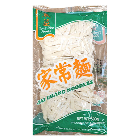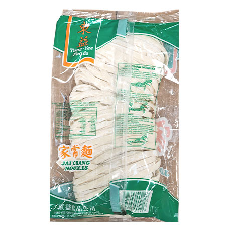 Our Jai Chang Noodles is wide and thick in length, giving a chewy and silky texture. This product is best served in noodle soup and stir fry.